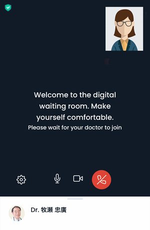 5. 以下の画面が表示され、牧瀬クリニックとオンラインで繋がった状態になります。牧瀬医師がコンタクトいたしますのでそのままの状態でお待ちください。