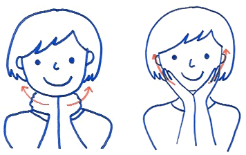 4) 甲状腺マッサージ:下図は、フランスはルイ14世の時代、70才にもかかわらず30才の若さと美貌を保っていたといわれるド・ランクル夫人が行っていた、甲状腺マッサージです。これが彼女の若さの秘密だったようです。もっとも、日に何度、1回につき何分間、このマッサージを行っていたかデータはありません。しかし、まったくお金がかからず、テレビを見ながらでもできる簡単な方法ですから、ほどほどに、試されても悪くはないでしょう。