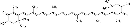 サケやイクラのあの赤みを出している物質だといえばおわかりになるでしょう。ヘマトコッカスなる藻類に多く含まれている 赤いカロテノイドで、食物連鎖によって、藻類 → プランクトン→ オキアミ、サクラエビ → サケ、マスと取り込まれていきます。オキアミについては、最初のオメガ3不飽和脂肪酸のところをお読みください。