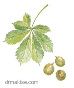名Aesculus hippocastanumトチノキ科トチノキ属の大型落葉樹で、マロニエとも呼ばれ、バルカン半島からトルコが原産です。日本でも街路樹として使われています。その葉や果実のエキスには、抗炎症作用、収斂(れん)作用、血行促進作用があり、痔・下痢・しもやけ・むくみなどに昔から使われてきました。